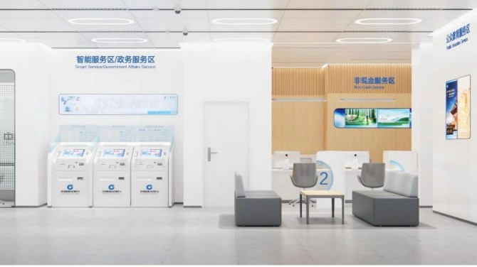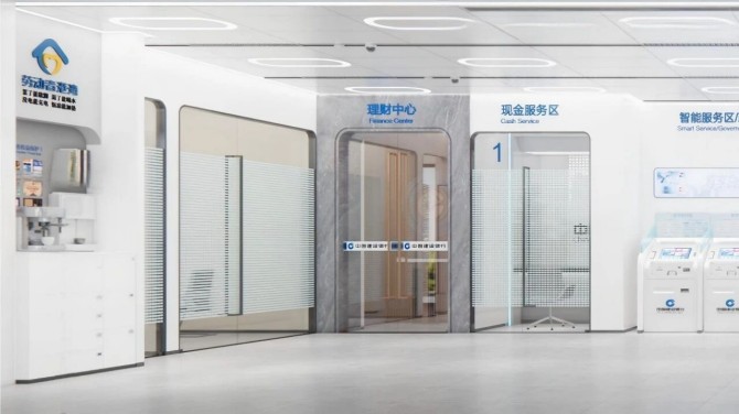 营业大厅功能布局清晰划分取号引导区、智能服务区、非现金服务区、等候区、自助银行、劳动者港湾等,确保客户动线流畅,支持 “一站式” 业务办理。