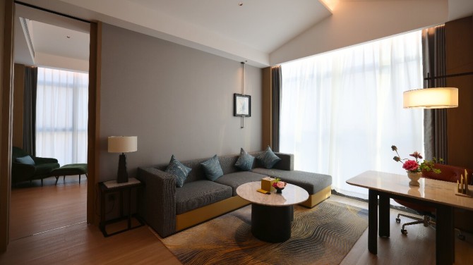 原点建设集团承建酒店大堂、自助餐厅、大堂吧、咖啡厅,中餐厅、会议室、健身房、洗衣房,客房、走廊、电梯厅等区域装修。凭借深厚的酒店装修施工积淀、精准的图纸深化能力与极致的工艺把控,原点建设将酒店 “惊艳、飘逸、极致” 三大品质标尺,完整落地于每一处空间,兼顾商务接待、科创活动、休闲旅居的多元需求,助力项目打造差异化市场竞争力。