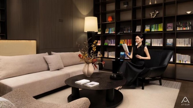 24小时开放的“竹居”流动图书馆是亚朵酒店标志性人文空间,通过书柜、案几等载体将书籍陈列,营造出“随手可翻、随时可读”的松弛阅读场景。