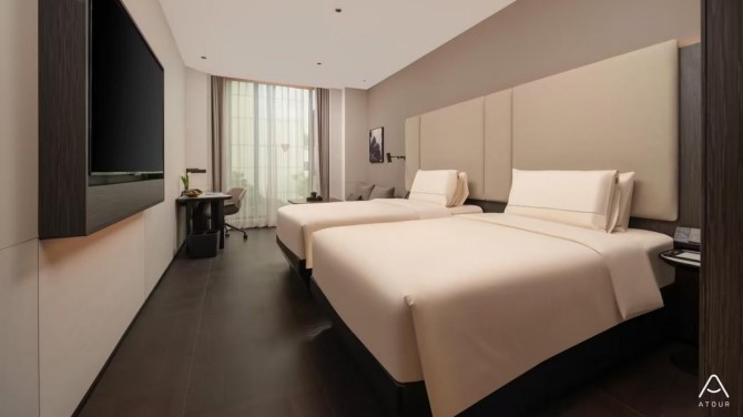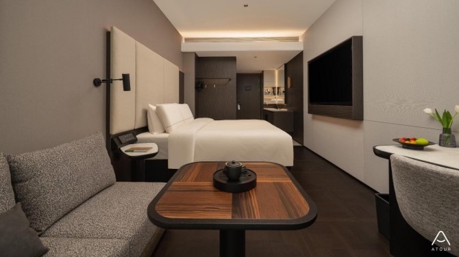 亚朵酒店3.6是亚朵集团面向新一代差旅用户推出的创新迭代产品,以流动阅读与属地摄影为独特主题,构建兼具高效能差旅与沉浸式休闲的旅居体验。酒店设计灵感来自“静谧的生机”,风格上更偏向简约商务的暗调高级感,以黑、深灰为主,搭配白色软装提亮,整体极简而大气。