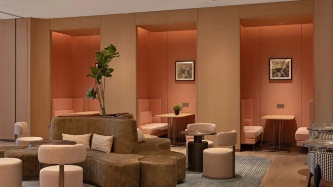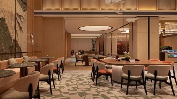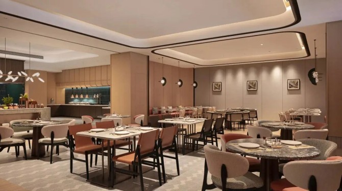 酒店全日餐厅延续开阔布局,搭配自然木质与暖色灯光,营造轻松温馨的用餐氛围,构建“家的温度”。