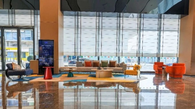 在面临土建遗留问题多、施工位置分散的复杂条件下,项目团队科学组织,遴选了20年以上经验的老师傅主导关键工艺。通过精确规划和协调,成功解决了管线综合布置与高空作业安全风险等难题,最终在紧张工期内实现如期履约,为酒店打造出兼具休闲调性与舒适惬意感的公共空间。